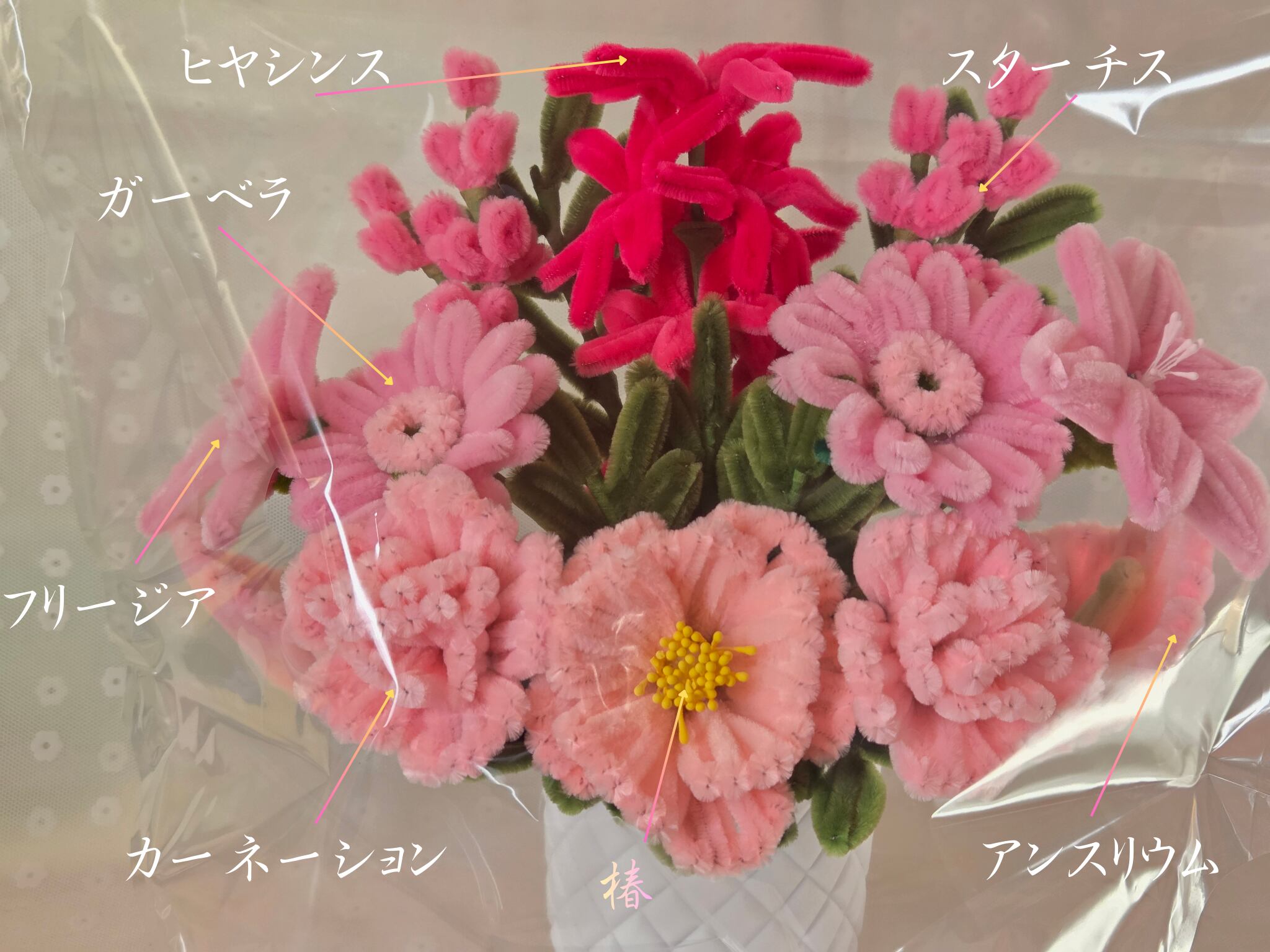 ピンクのスタンド花 モールフラワー【推し活やインテリアに!】